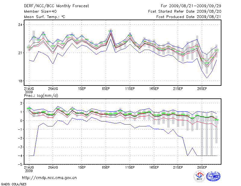 临 沧 (LAT:23.95 LON:100.22) 2009-08-21        预测