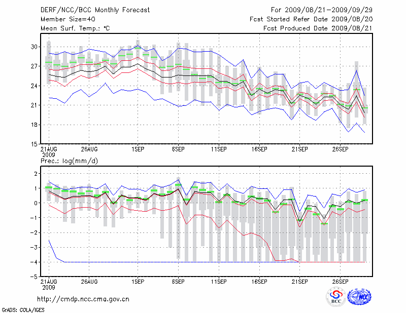 钟 祥 (LAT:31.17 LON:112.57) 2009-08-21        预测