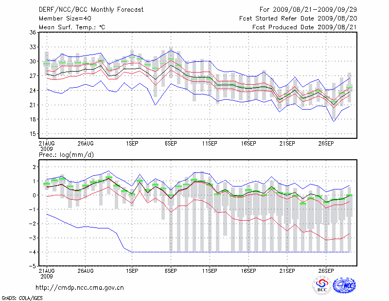岳 阳 (LAT:29.38 LON:113.08) 2009-08-21        预测