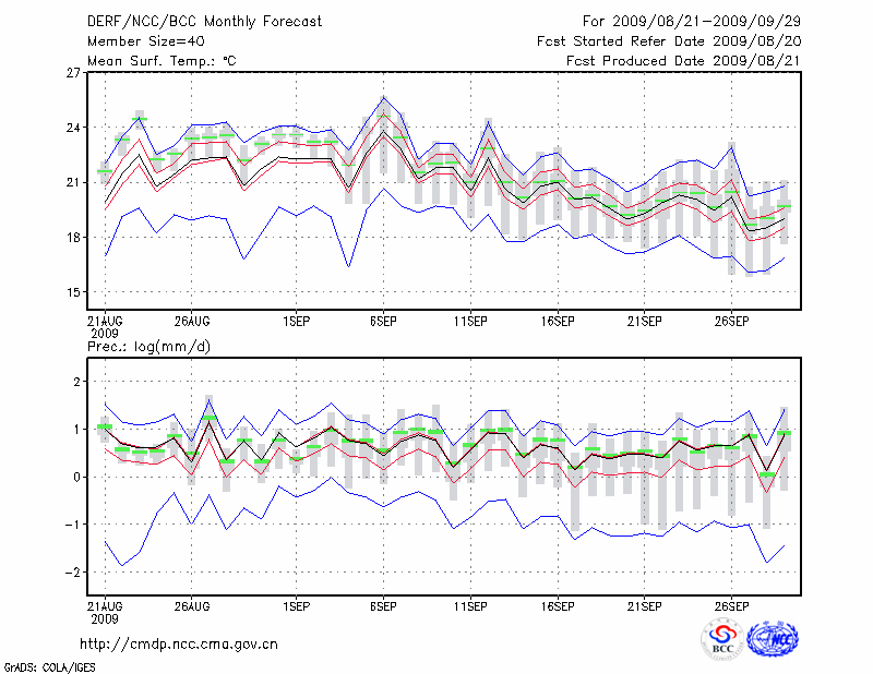 毕 节 (LAT:27.30 LON:105.23) 2009-08-21        预测