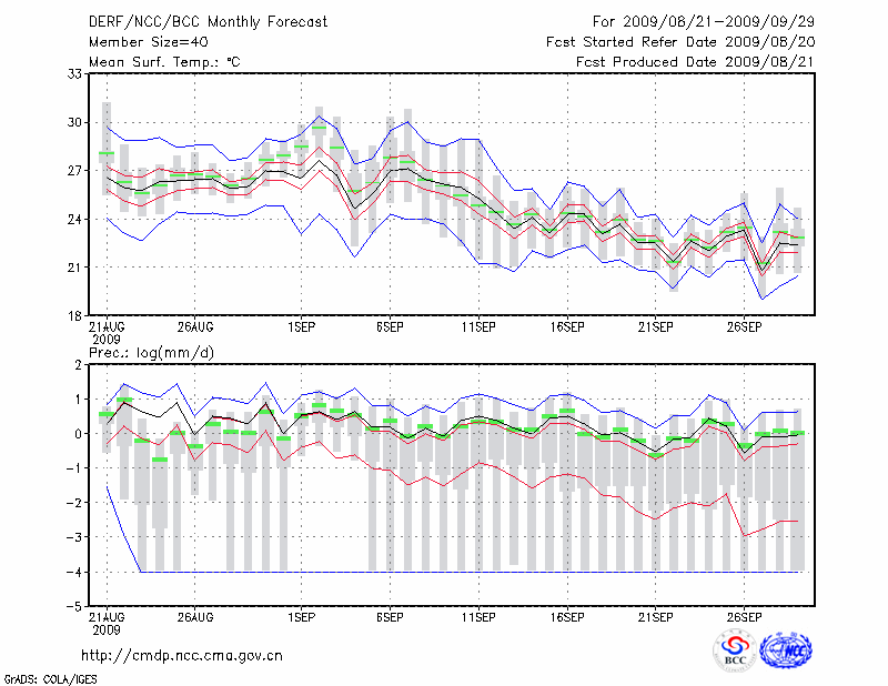 南 京 (LAT:32.00 LON:118.80) 2009-08-21        预测