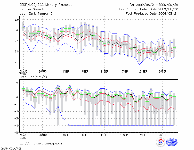 南 昌 (LAT:28.60 LON:115.92) 2009-08-21        预测