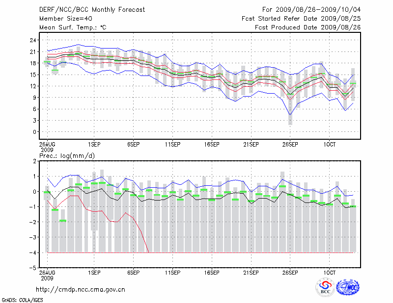 哈 尔 滨 (LAT:45.75 LON:126.77) 2009-08-26        预测