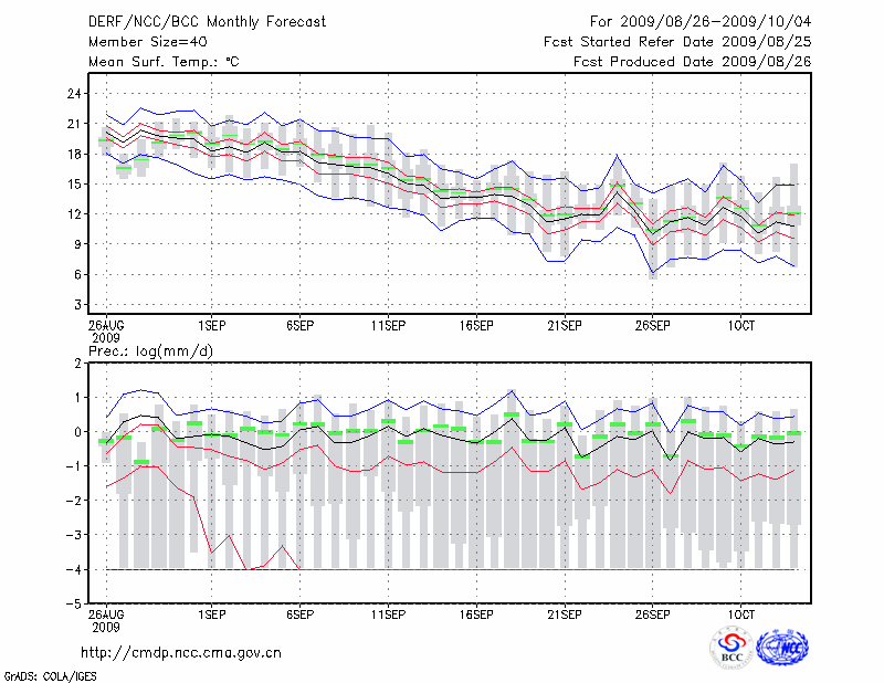 牡 丹 江 (LAT:44.57 LON:129.60) 2009-08-26        预测