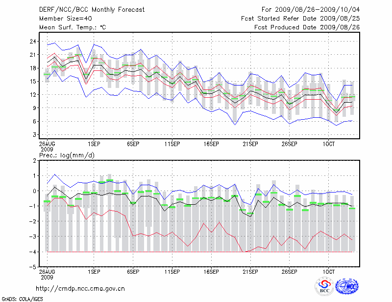 锡林浩特 (LAT:43.95 LON:116.07) 2009-08-26        预测