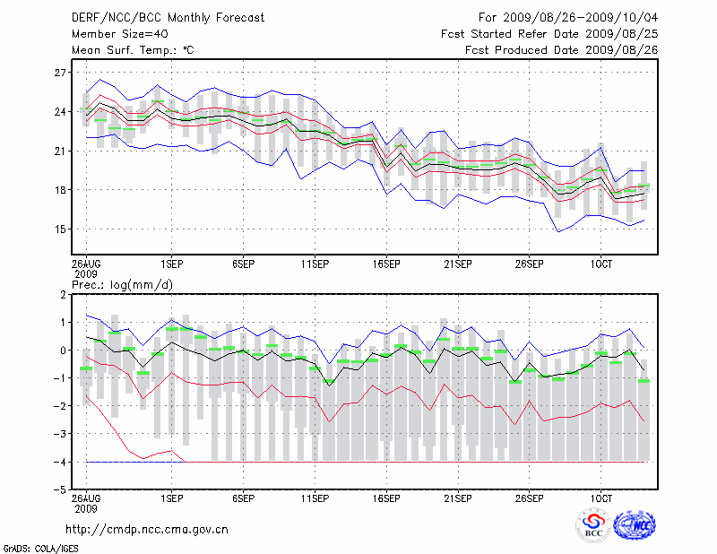 北 京 (LAT:39.93 LON:116.28) 2009-08-26        预测