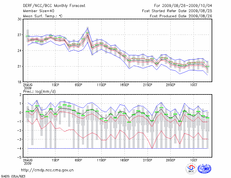 青 岛 (LAT:36.07 LON:120.33) 2009-08-26        预测