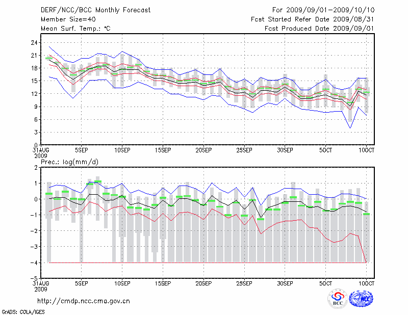 呼和浩特 (LAT:40.82 LON:111.68) 2009-09-01        预测