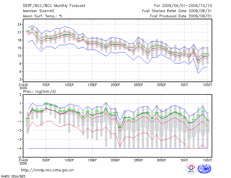 银 川 (LAT:38.48 LON:106.22) 2009-09-01        预测