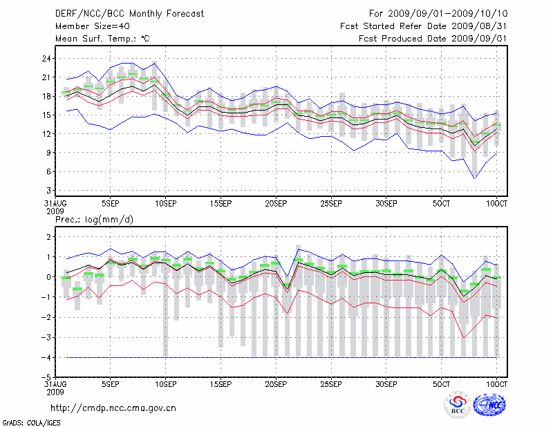 西 峰 镇 (LAT:35.73 LON:107.63) 2009-09-01        预测