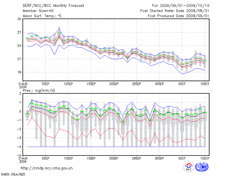 青 岛 (LAT:36.07 LON:120.33) 2009-09-01        预测