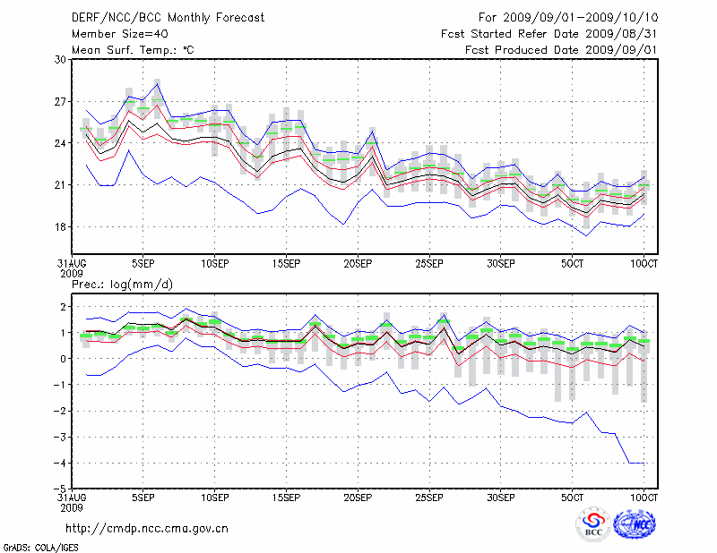 雅 安 (LAT:29.98 LON:103.00) 2009-09-01        预测