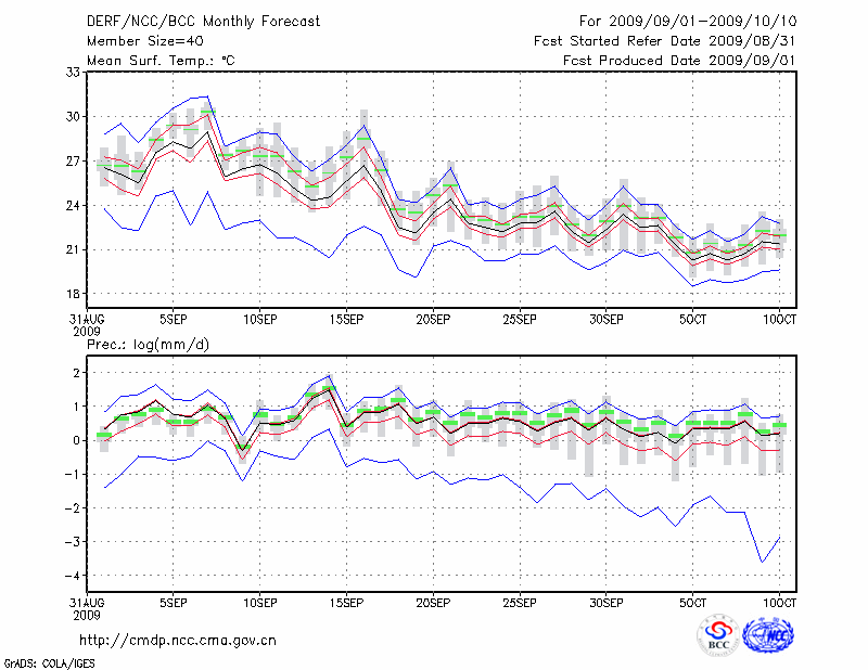 宜 宾 (LAT:28.80 LON:104.60) 2009-09-01        预测