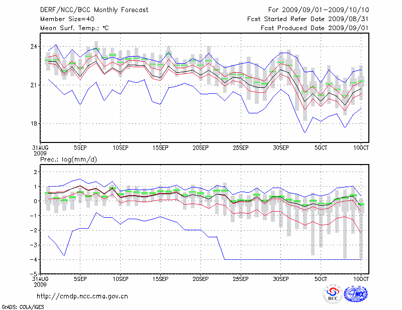 蒙 自 (LAT:23.38 LON:103.38) 2009-09-01        预测