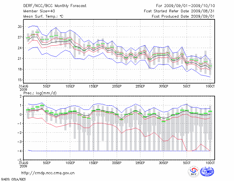 南 京 (LAT:32.00 LON:118.80) 2009-09-01        预测