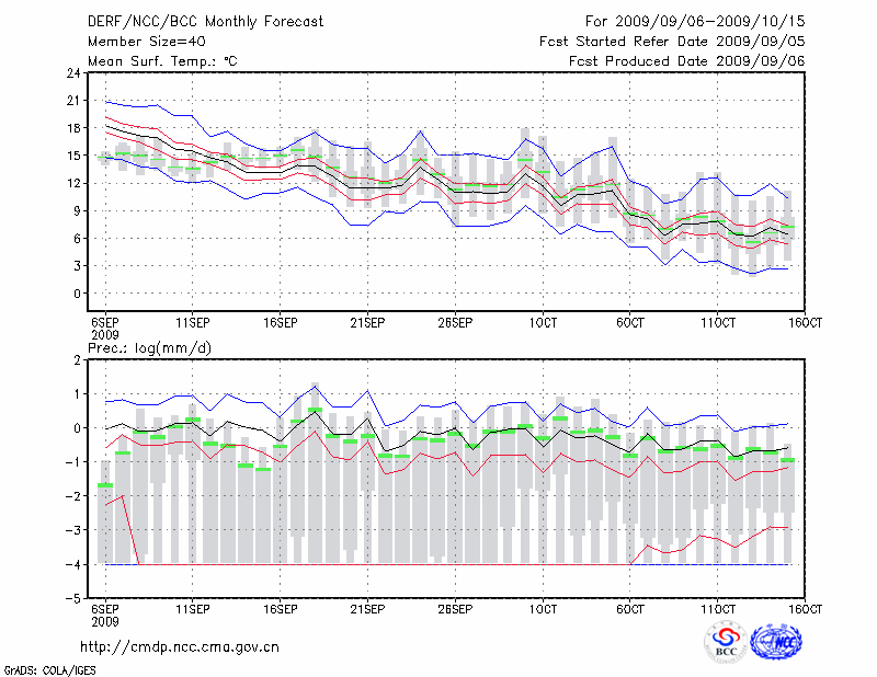 牡 丹 江 (LAT:44.57 LON:129.60) 2009-09-06        预测