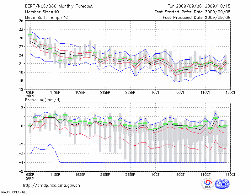 岳 阳 (LAT:29.38 LON:113.08) 2009-09-06        预测