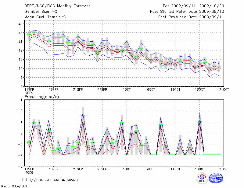 若 羌 (LAT:39.03 LON:88.17) 2009-09-11        预测