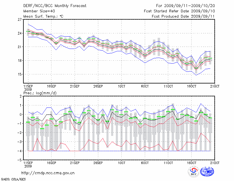 青 岛 (LAT:36.07 LON:120.33) 2009-09-11        预测