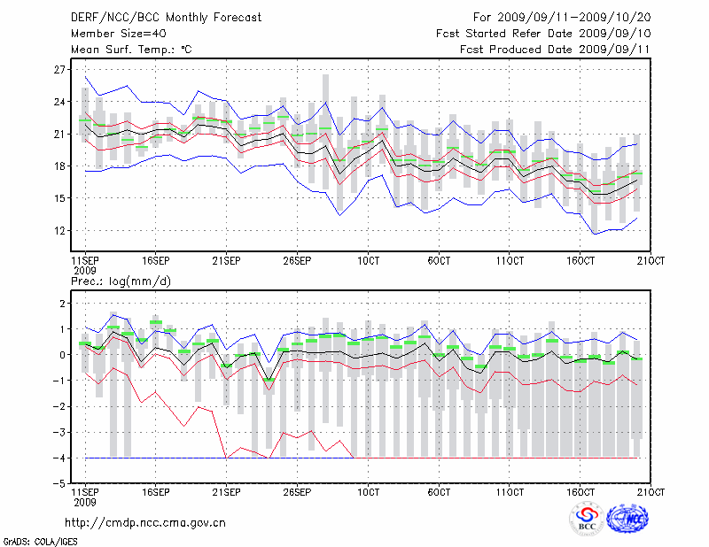 信 阳 (LAT:32.13 LON:114.05) 2009-09-11        预测