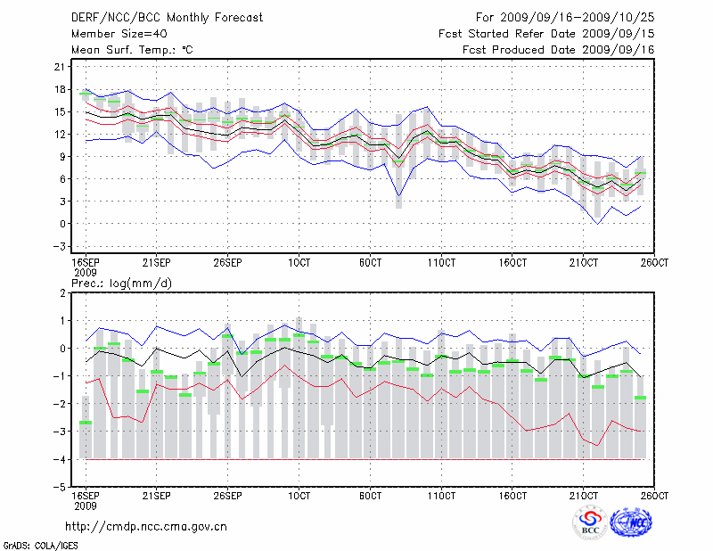 呼和浩特 (LAT:40.82 LON:111.68) 2009-09-16        预测