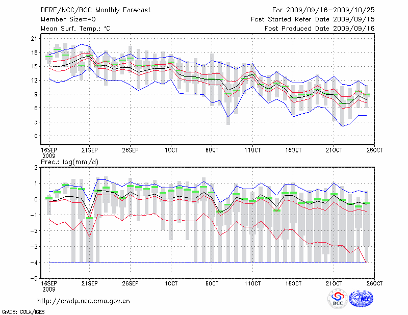 西 峰 镇 (LAT:35.73 LON:107.63) 2009-09-16        预测