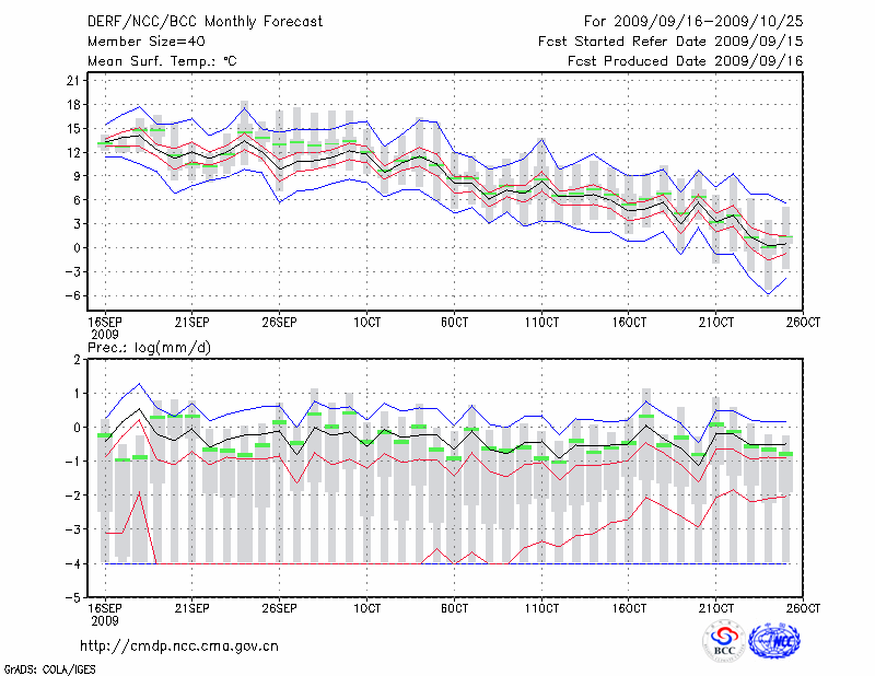 牡 丹 江 (LAT:44.57 LON:129.60) 2009-09-16        预测