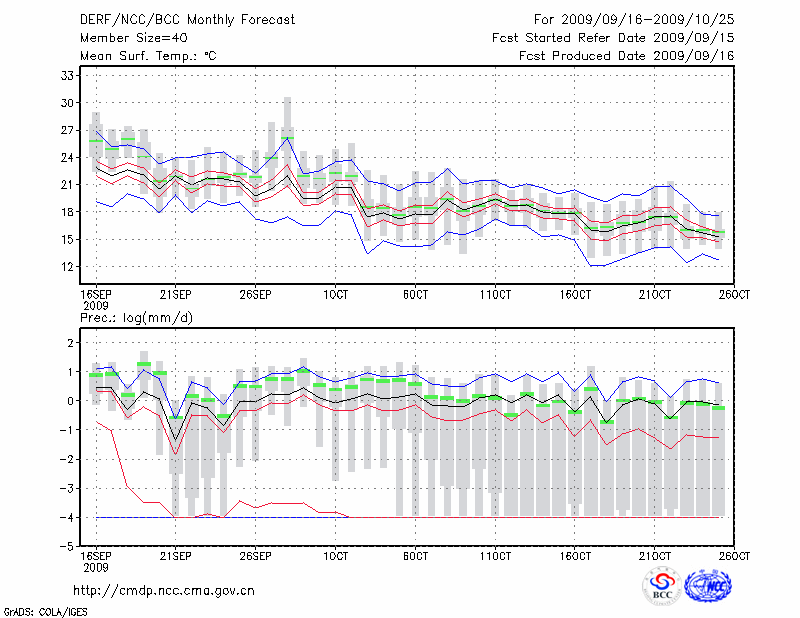 钟 祥 (LAT:31.17 LON:112.57) 2009-09-16        预测