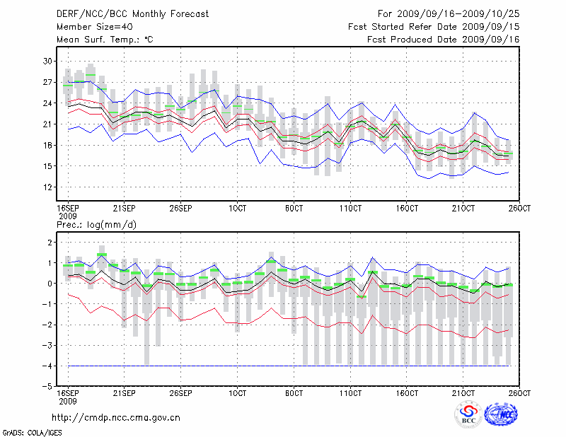 岳 阳 (LAT:29.38 LON:113.08) 2009-09-16        预测
