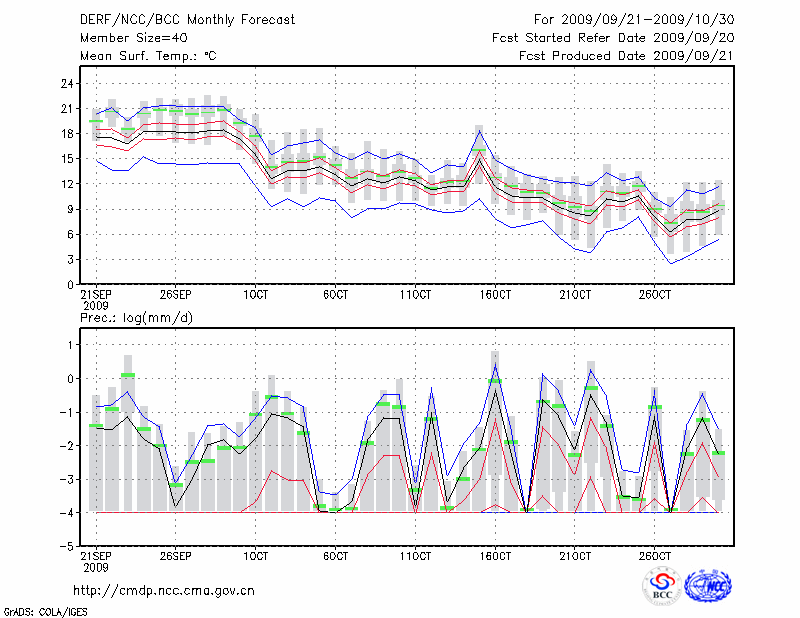 哈 密 (LAT:42.82 LON:93.52) 2009-09-21        预测