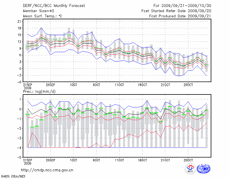 牡 丹 江 (LAT:44.57 LON:129.60) 2009-09-21        预测