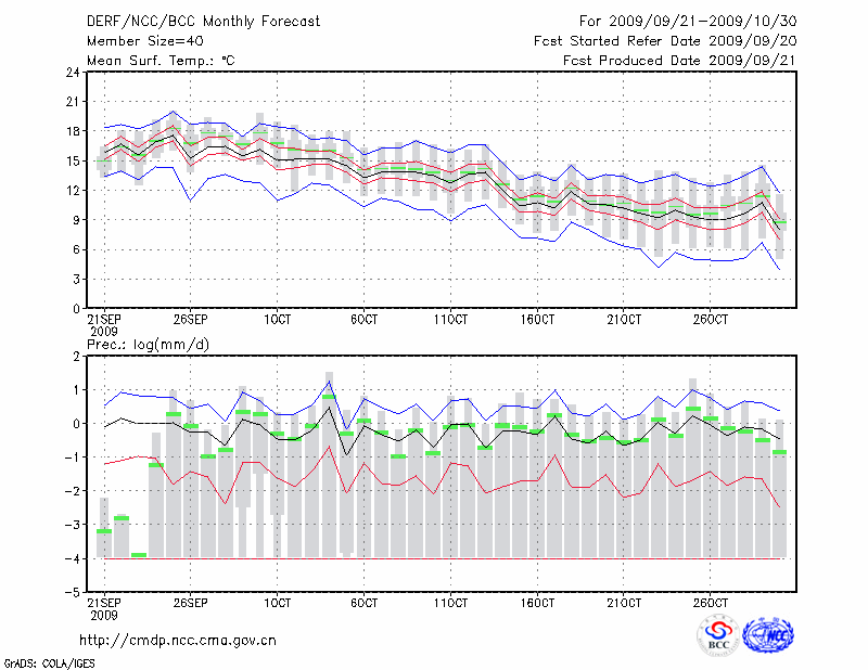 丹 东 (LAT:40.05 LON:124.33) 2009-09-21        预测