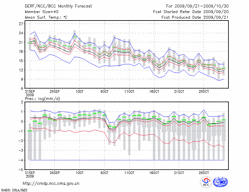 西 安 (LAT:34.30 LON:108.93) 2009-09-21        预测