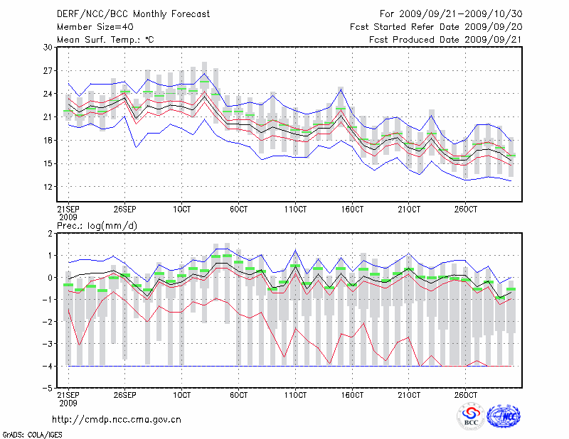 安 庆 (LAT:30.53 LON:117.05) 2009-09-21        预测