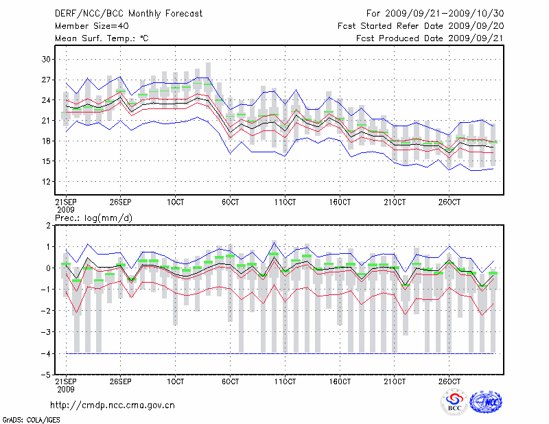 南 昌 (LAT:28.60 LON:115.92) 2009-09-21        预测