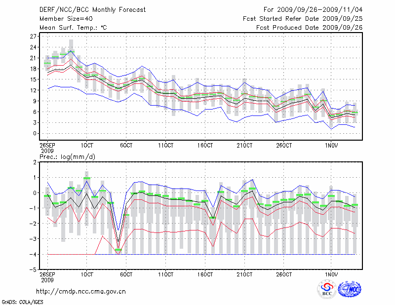 乌 苏 (LAT:44.43 LON:84.66) 2009-09-26        预测