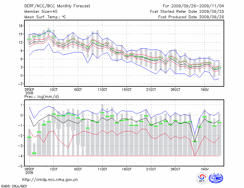 呼和浩特 (LAT:40.82 LON:111.68) 2009-09-26        预测
