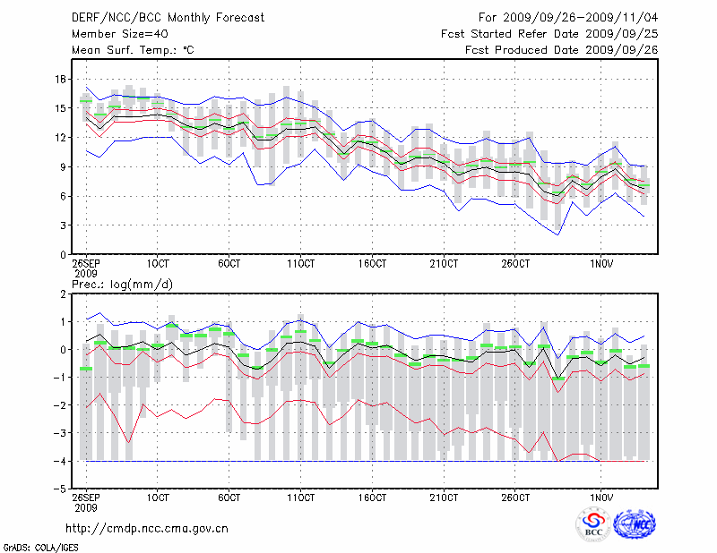 延 安 (LAT:36.60 LON:109.50) 2009-09-26        预测
