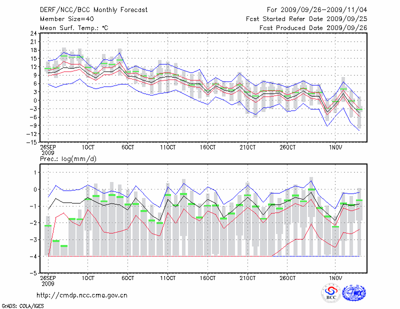 锡林浩特 (LAT:43.95 LON:116.07) 2009-09-26        预测