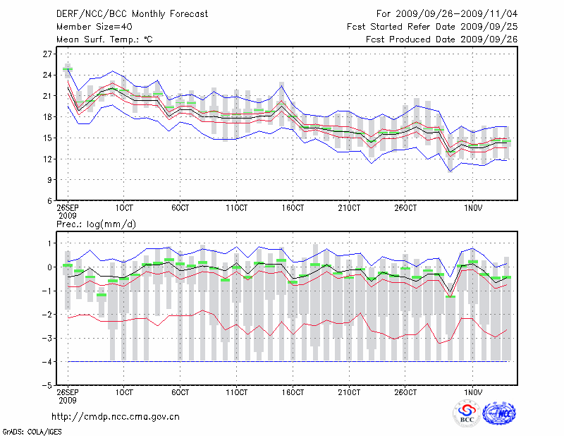南 京 (LAT:32.00 LON:118.80) 2009-09-26        预测