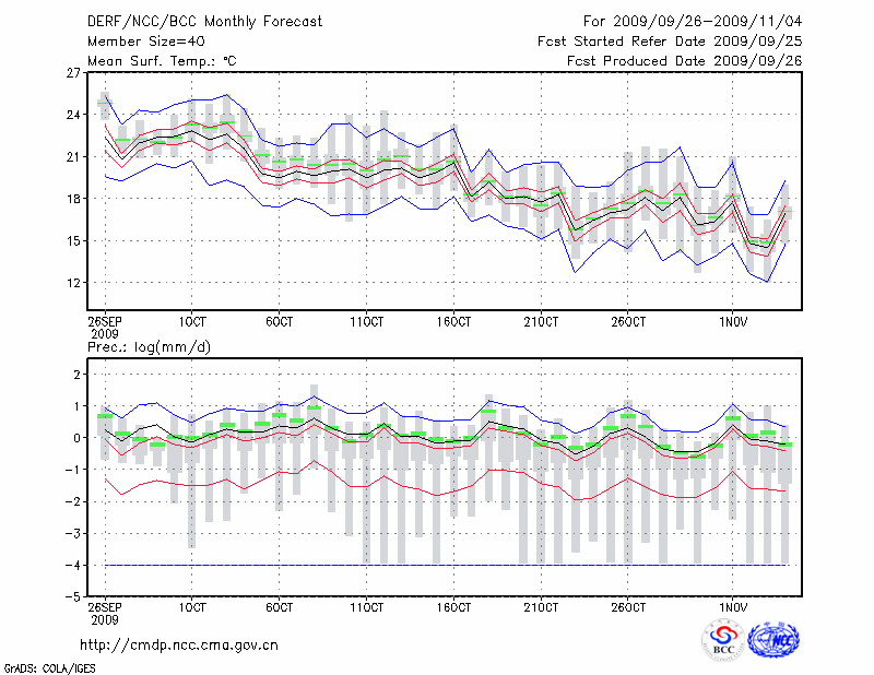 杭 州 (LAT:30.23 LON:120.17) 2009-09-26        预测