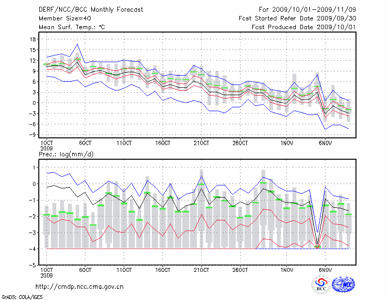 乌兰浩特 (LAT:46.08 LON:122.05) 2009-10-01        预测