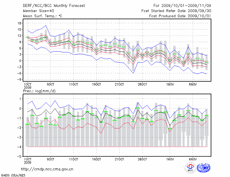 哈 尔 滨 (LAT:45.75 LON:126.77) 2009-10-01        预测