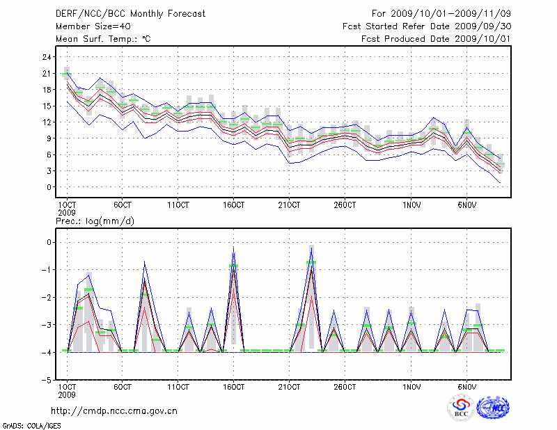 若 羌 (LAT:39.03 LON:88.17) 2009-10-01        预测