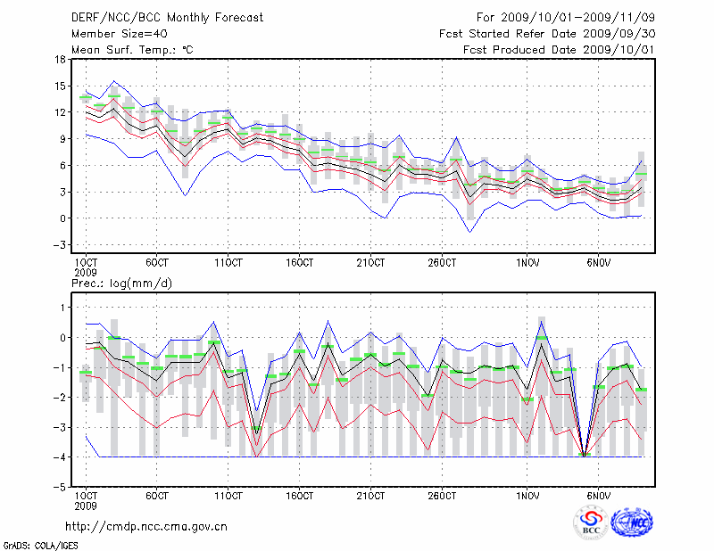 张 掖 (LAT:38.93 LON:100.43) 2009-10-01        预测