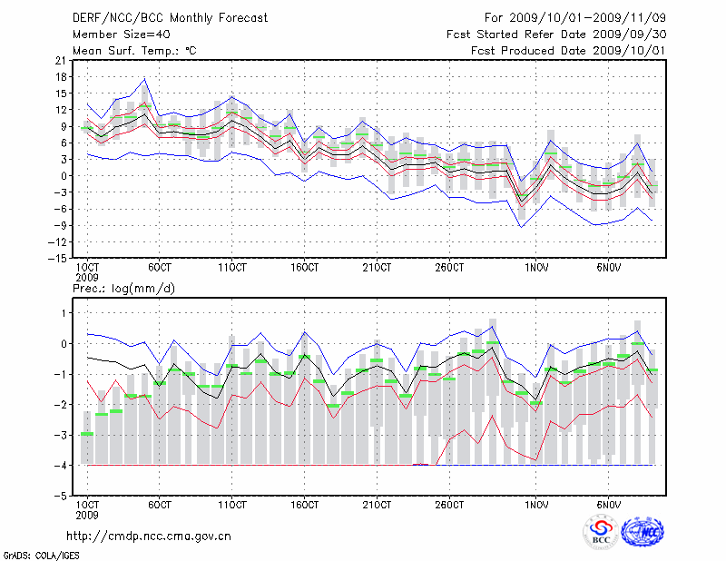 锡林浩特 (LAT:43.95 LON:116.07) 2009-10-01        预测