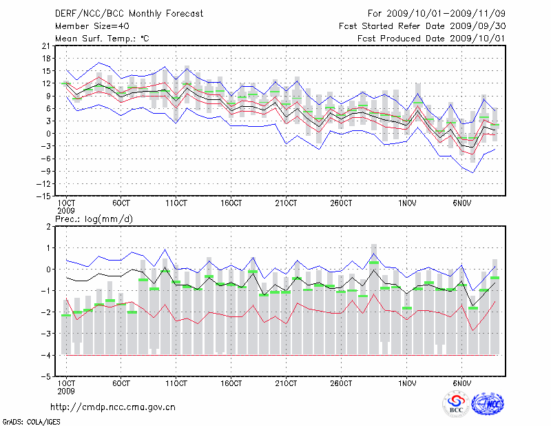 长 春 (LAT:43.90 LON:125.22) 2009-10-01        预测