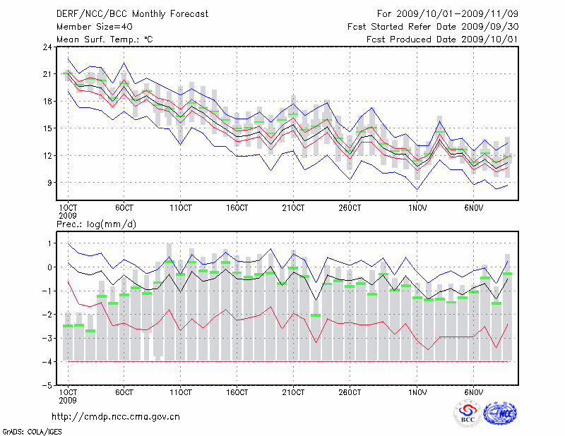 潍 坊 (LAT:36.70 LON:119.08) 2009-10-01        预测