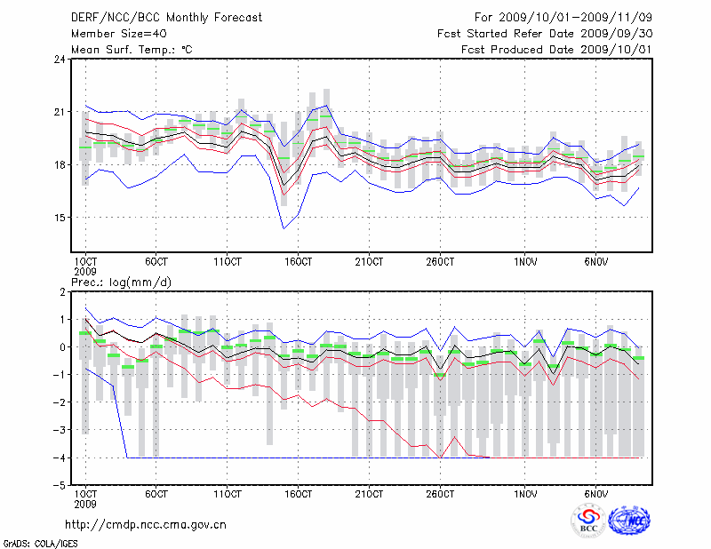 临 沧 (LAT:23.95 LON:100.22) 2009-10-01        预测