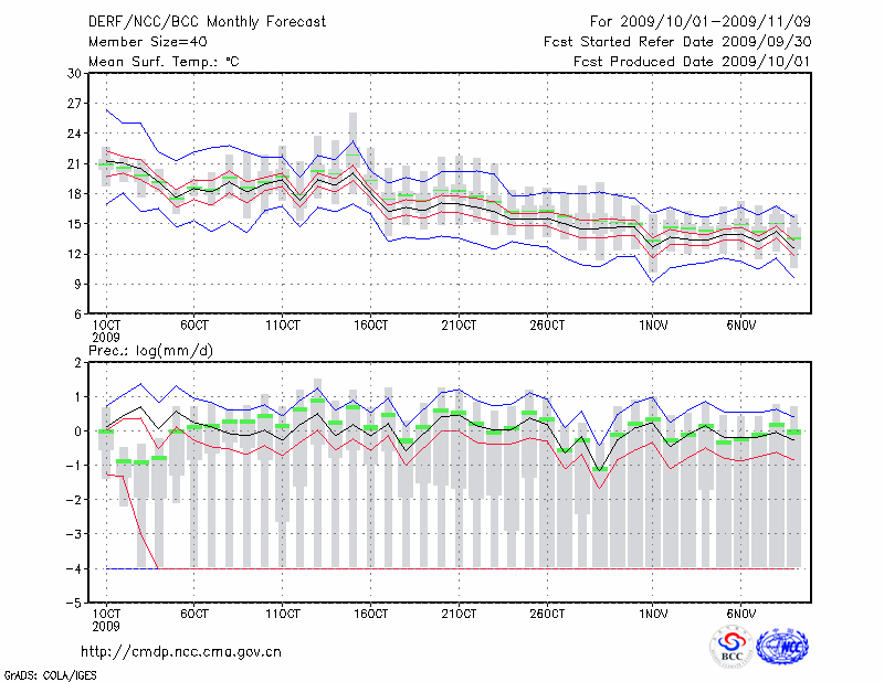 汉 口 (LAT:30.62 LON:114.13) 2009-10-01        预测